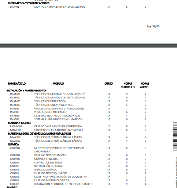 La distribución de módulos formativos en la Formación Profesional Dual y de los ciclos formativos